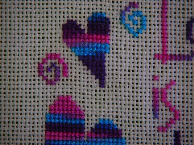 Finally, is Mini Masquerade (Sessler). Another confetti mess but so nice to have a limited palate of colours, you definitely don't spend so long finding the next thread you need! Despite it being a mini, I really think that it has lost none of it's detail. I am really pleased with the way it is turning out.